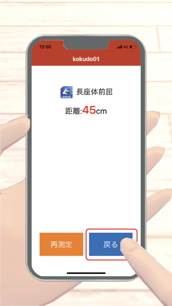 前屈できた距離のセンチメートル未満は切り捨てます。