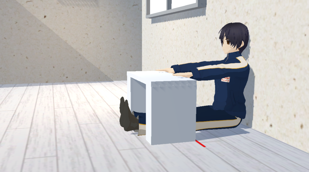 素足になり、両足を測定器に入れて長座の姿勢をとります。